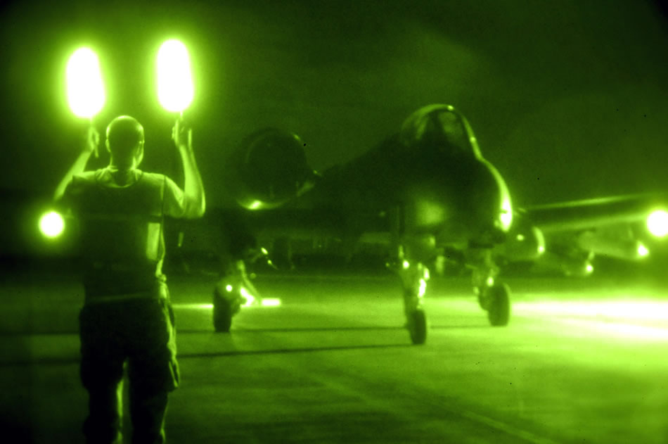 Related ArticleSenior Airman Daniel Young marshals in an A-10 Thunderbolt II for munitions disarming after an Oct. 28 mission at Al Asad Air Base, Iraq. The A-10C's are assigned to the 104th Expeditionary Fighter Squadron, which is made up primarily of members from the 175th Maryland Air National Guard. Airman Young is a Maryland Air National Guard crew chief. The 104th EFS is the first unit to use the C-model A-10 in a combat zone. Its upgrades have made air power more efficient and have streamlined the close-air-support mission. (U.S. Air Force photo/Staff Sgt Angelique Perez)
